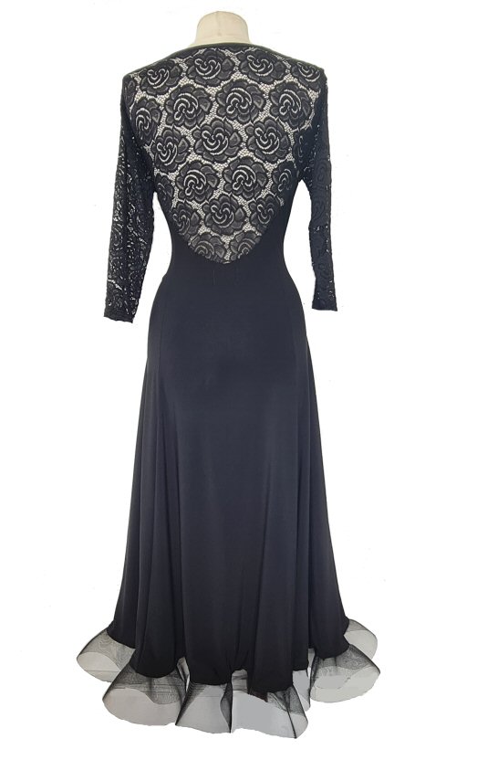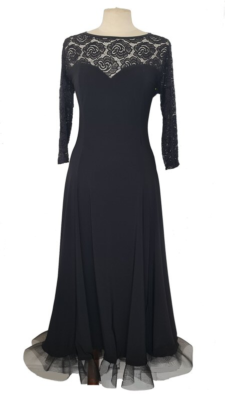 This superb Ballroom dress is made of stretch jersey which is soft in touch and flows beautifully. Lace sleeves and back. The dress comes with separate bra cups, which you can insert in way convenient to you.Model height is 5ft 8in (172cm) and the dress on photo is 52" (132cm) Length from top of shoulder to hem . Other lengths also available.