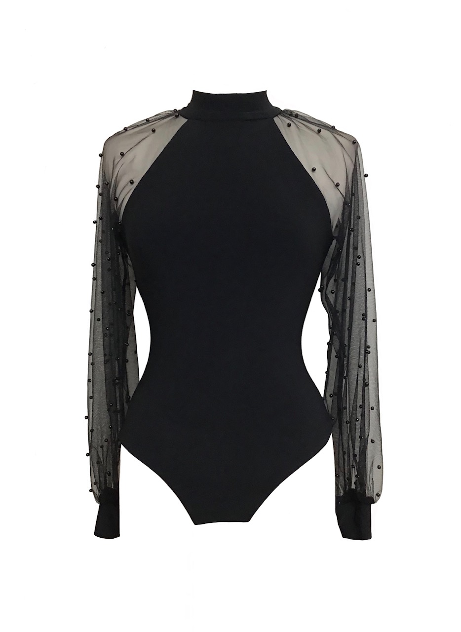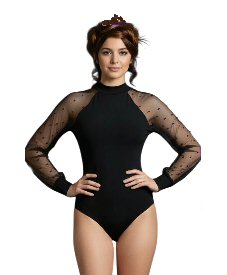 Soft, body friendly, stretch jersey with dotted mesh sleeves. The body has a row of poppers in crotch to make wearing it easy.Available in UK size 8 - 20. It can also be made to your size.