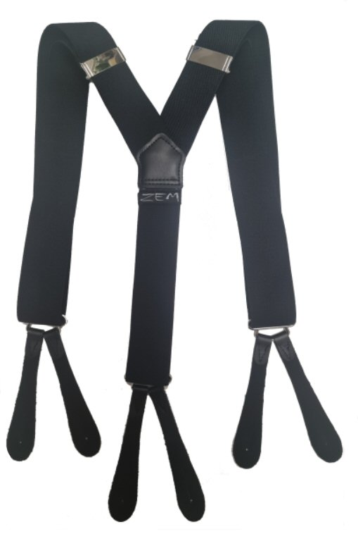 Elasticated braces (suspenders) finished with leather loops. Adjustable length. One size fits all. Width 4cm (1.5 inch). Require trousers with buttons for braces at waist.Delivery times: UK: 3 days | Rest of the world: 1-2 weeks