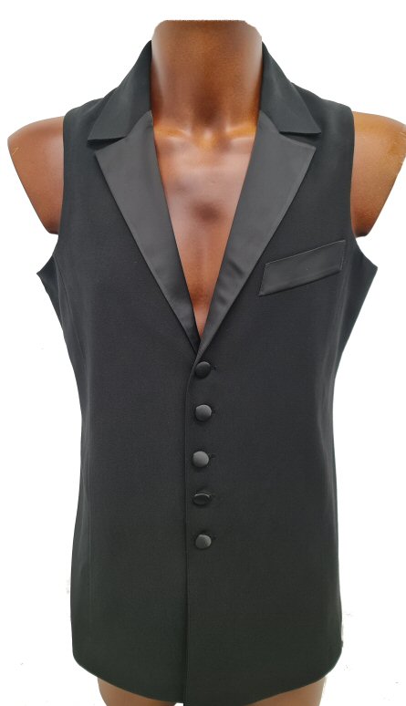 This long line waistcoat can be called a "jacket without sleeves". It is made from the same fabric as our E-MTR102 Ballroom/Latin trousers and completed with elegant satin lapel, satin covered buttons plus a fake pocket.The waistcoat is shown with E-MS041 shirt and Bow tie (not included). To ensure good fitting this item is made to your measurements. Please provide: