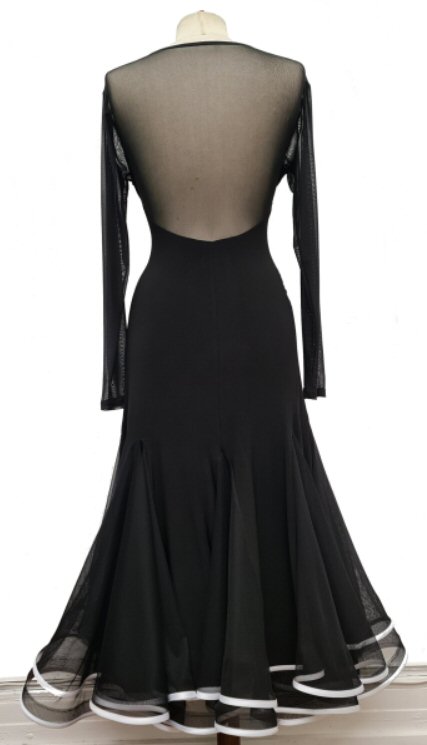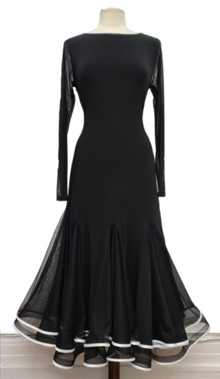 This soft and body friendly dress is made of stretch jersey with mesh godets finished with contrasting colour WHITE satin edging on multi-layer hem. Your back is beautifully presented behind a single layer of mesh.Model height is 5ft 8in (172cm) and the dress length on photo is 52" (132cm) from top of shoulder to hem . Other lengths also available.