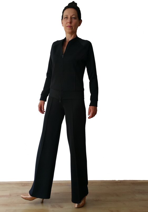 These trousers are made in the same heavenly stretchy fabric as our "Warm up/Cool down jacket" (just above). The cut of the trousers is such that is combines Smart and Sporty look at the same time. They feel like stretchy Sport trousers, but look smart from a distance. The trousers have pre-made vertical creases on the front and at the back of either leg, but are totally resistant to any accidental creases. This is a very practical design, ladies who tried them on love it.The fabric is very easy care: machine washable, dry quickly and do not require ironing. Totally crease resistant. Throw them into a bag, take them out and they look perfectly fresh.