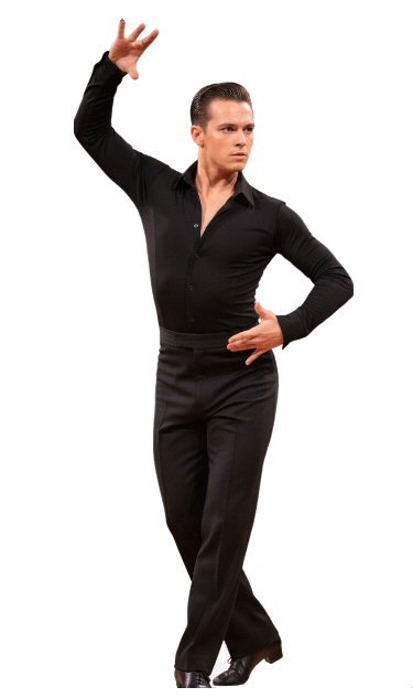 Raglan cut stretchy latin shirt. Single cuff with button. BlackDelivery times: up to 1 week depending on destination