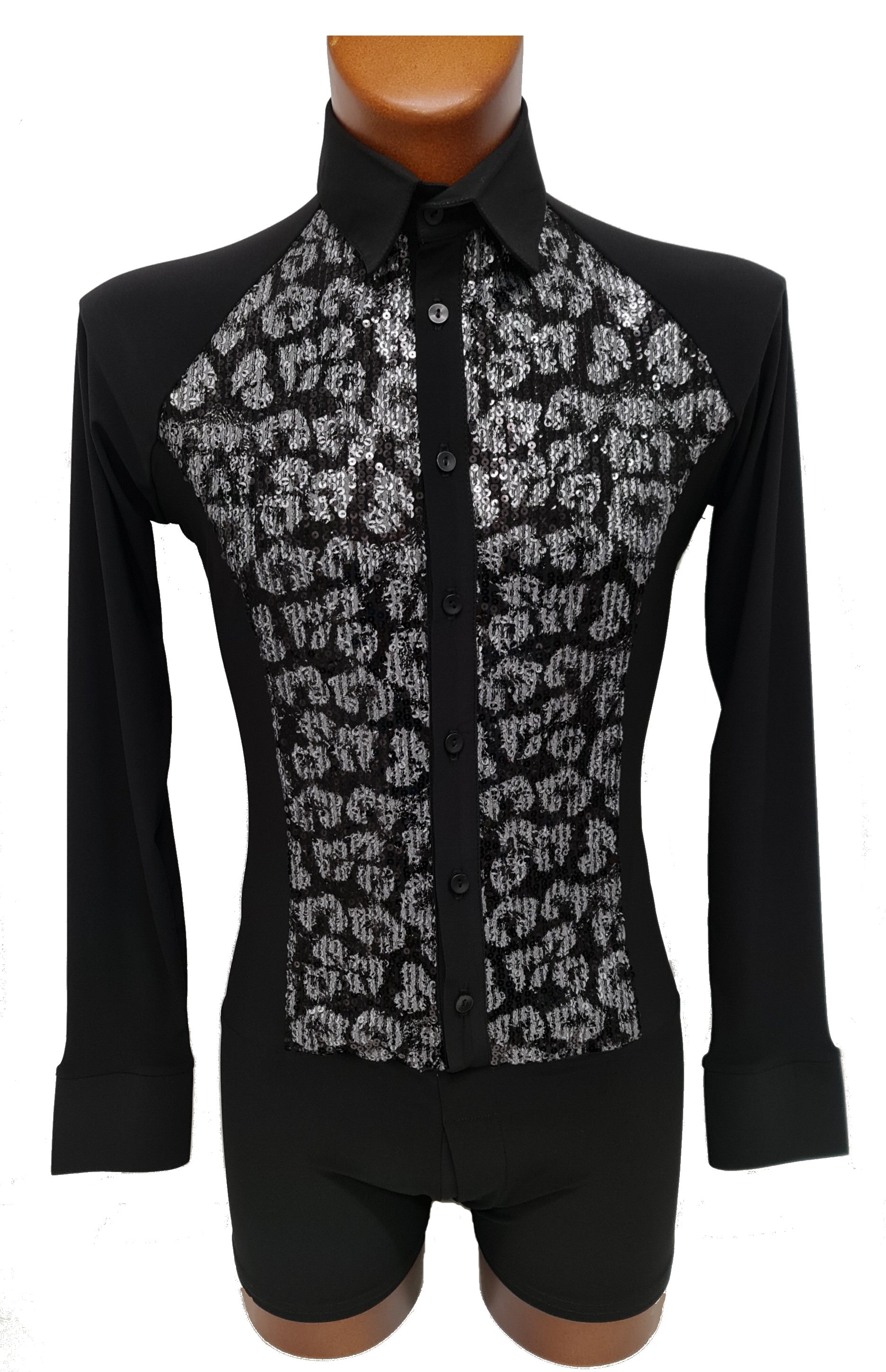 Raglan cut full body shirt built on shorts, so it will never pull out of your trousers. Single cuff with button. Silver/Grey Sequin panels on the front. Plain back. Available in all sizes and can be made in custom size.One off special offer: Collar 15.5" Chest 36-38"